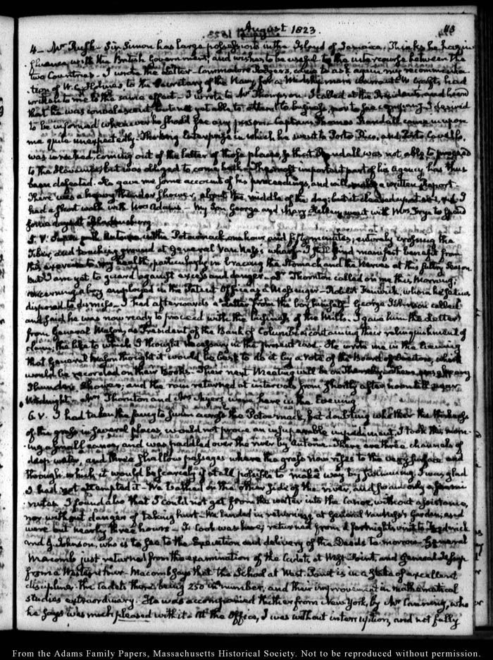 View full, authoritative transcriptions with page images of the diaries at John Quincy Adams Digital Diary part of the Primary Source Cooperative at the MHS.