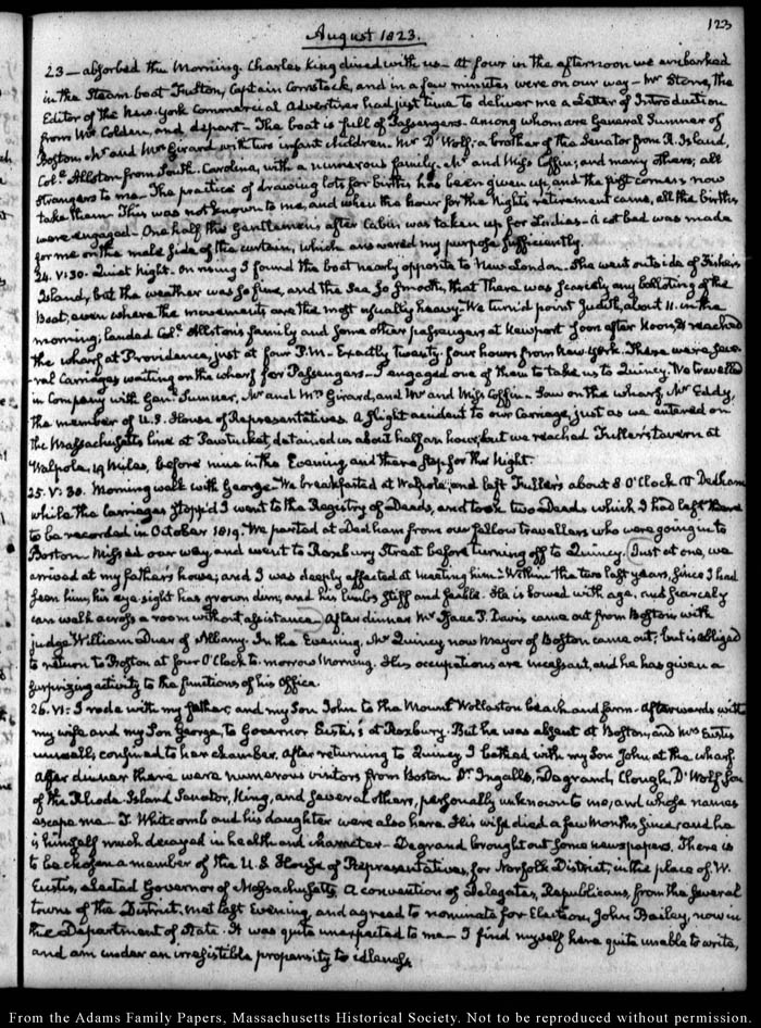 This is our legacy JQA diaries website and allows researchers to view the physical diaries page-by-page.