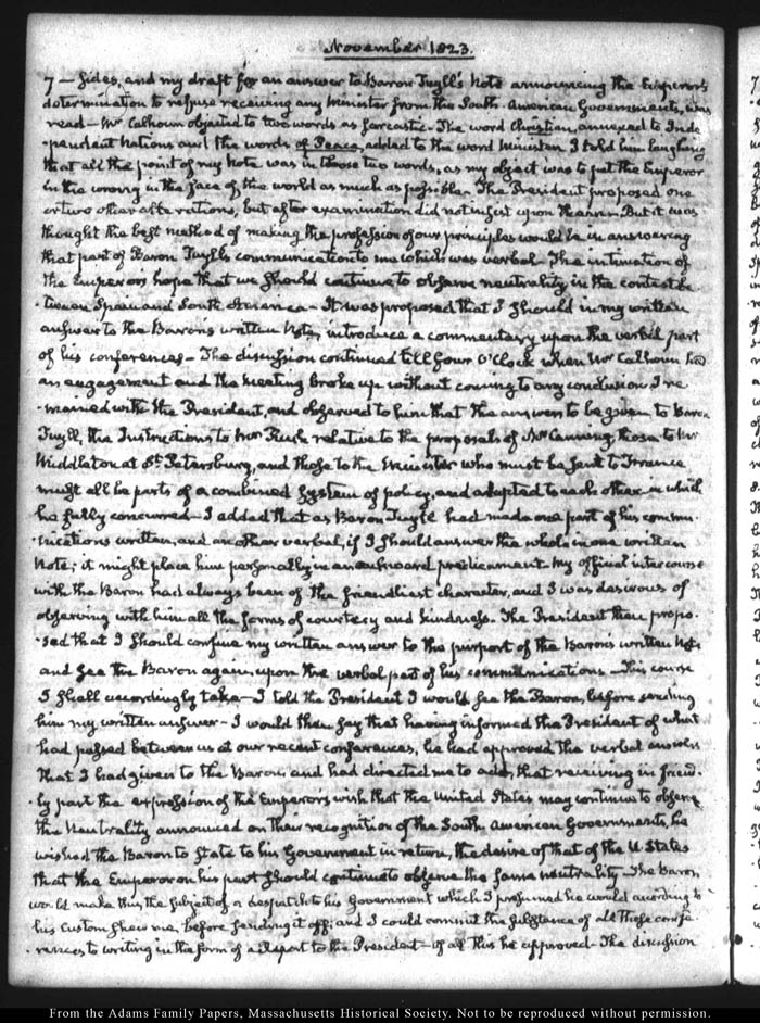 View full, authoritative transcriptions with page images of the diaries at John Quincy Adams Digital Diary part of the Primary Source Cooperative at the MHS.
