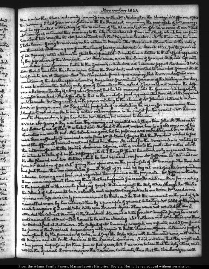 View full, authoritative transcriptions with page images of the diaries at John Quincy Adams Digital Diary part of the Primary Source Cooperative at the MHS.