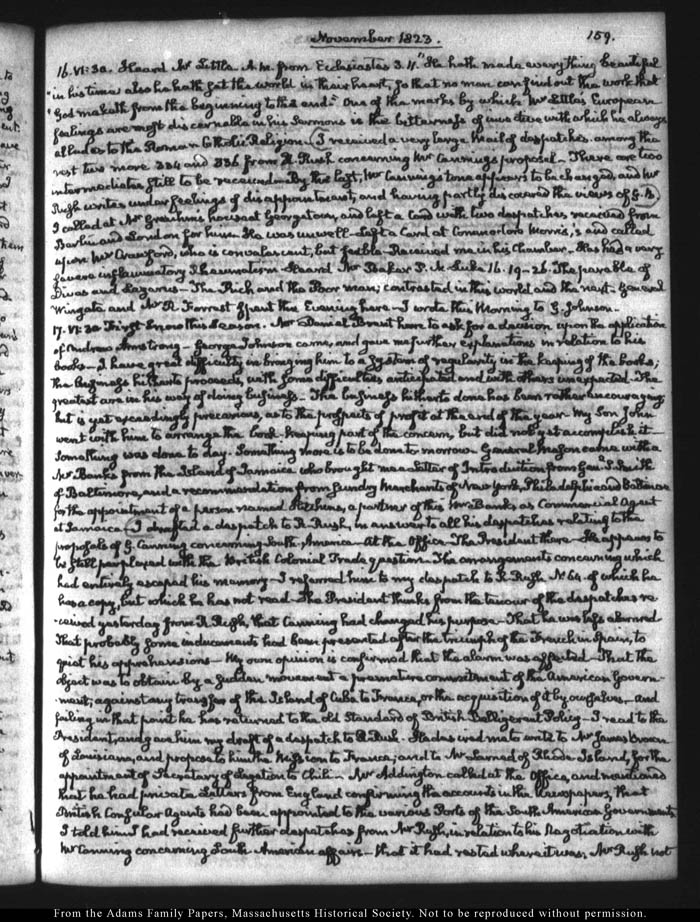 View full, authoritative transcriptions with page images of the diaries at John Quincy Adams Digital Diary part of the Primary Source Cooperative at the MHS.