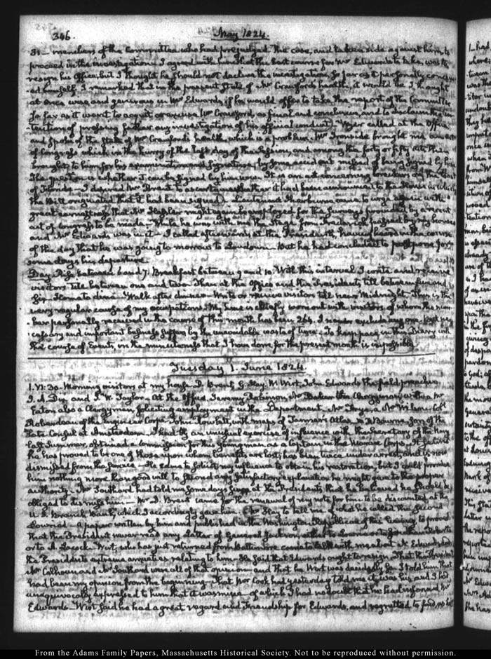 View full, authoritative transcriptions with page images of the diaries at John Quincy Adams Digital Diary part of the Primary Source Cooperative at the MHS.