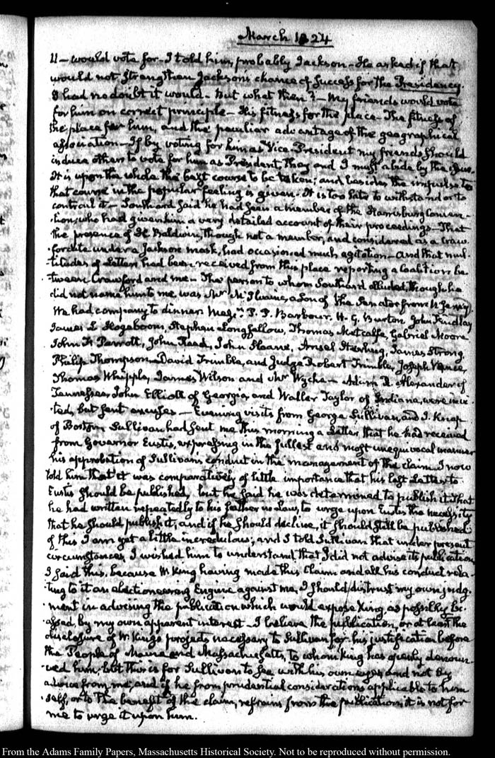 View full, authoritative transcriptions with page images of the diaries at John Quincy Adams Digital Diary part of the Primary Source Cooperative at the MHS.