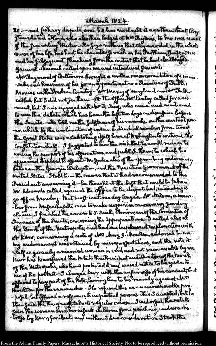View full, authoritative transcriptions with page images of the diaries at John Quincy Adams Digital Diary part of the Primary Source Cooperative at the MHS.