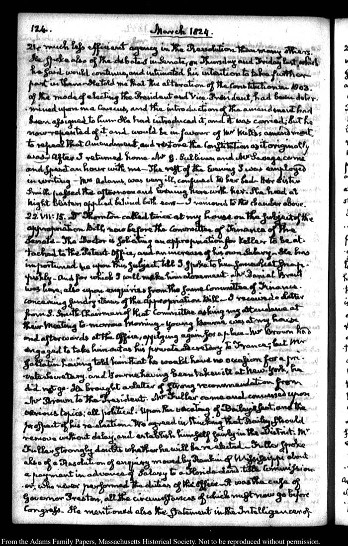 John Quincy Adams diary 35, 25 January 1823 - 31 October 1826, 5 November 1828, and 15 August 1844, page 124