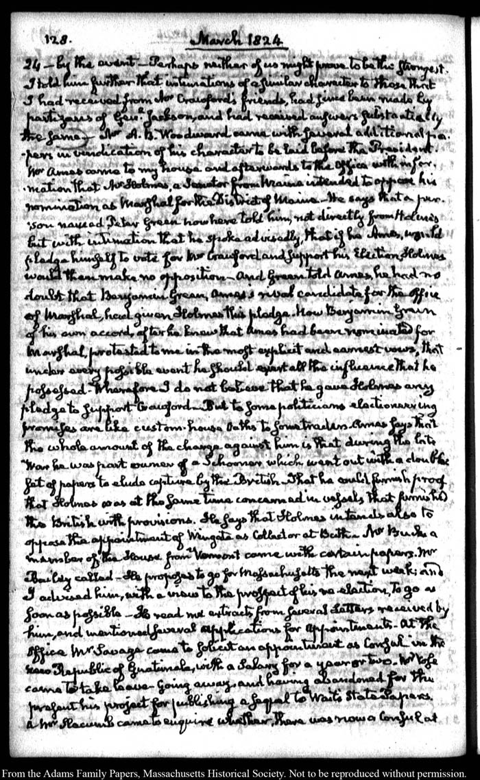 John Quincy Adams diary 35, 25 January 1823 - 31 October 1826, 5 November 1828, and 15 August 1844, page 128