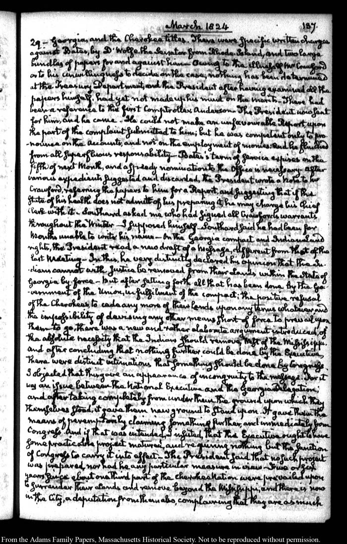 John Quincy Adams diary 35, 25 January 1823 - 31 October 1826, 5 November 1828, and 15 August 1844, page 137