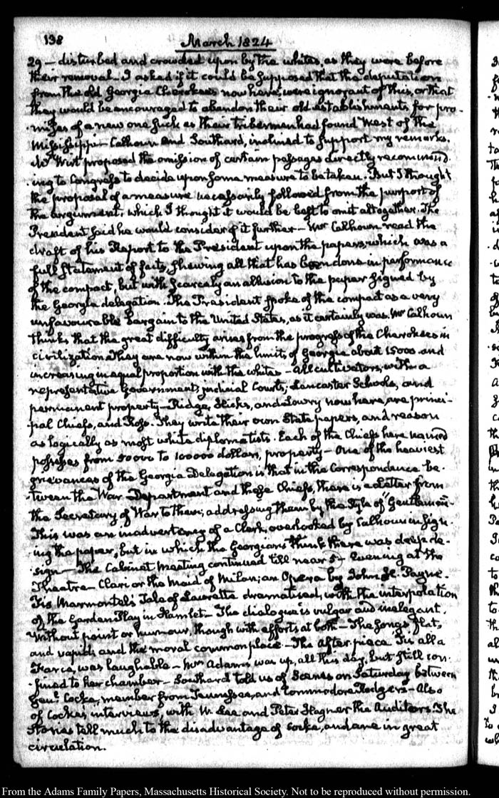 John Quincy Adams diary 35, 25 January 1823 - 31 October 1826, 5 November 1828, and 15 August 1844, page 138