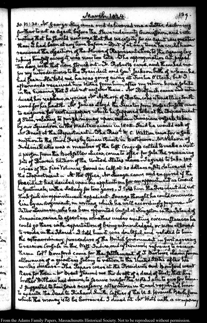 John Quincy Adams diary 35, 25 January 1823 - 31 October 1826, 5 November 1828, and 15 August 1844, page 139