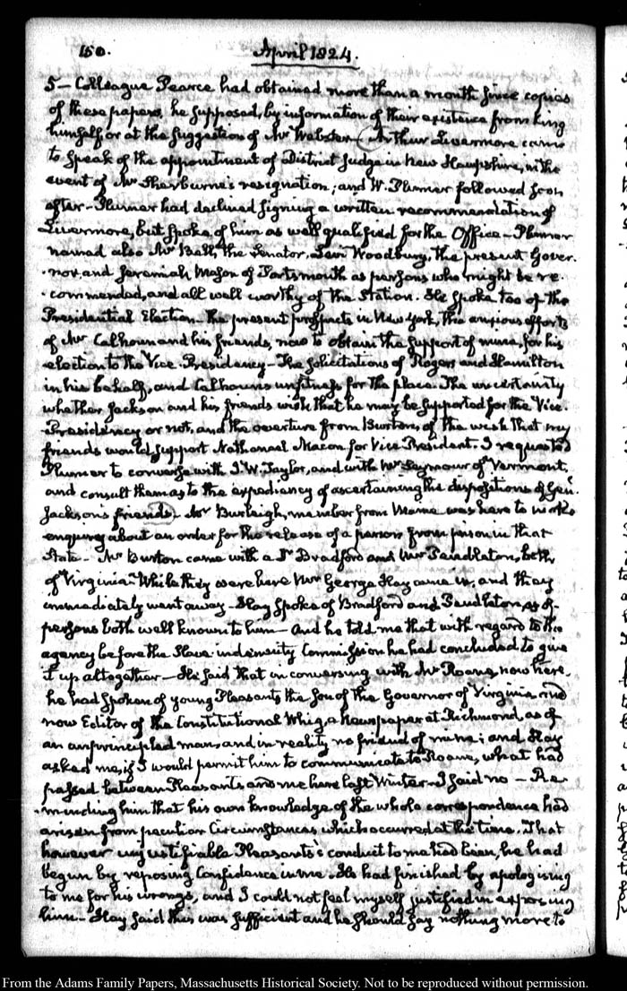 John Quincy Adams diary 35, 25 January 1823 - 31 October 1826, 5 November 1828, and 15 August 1844, page 150