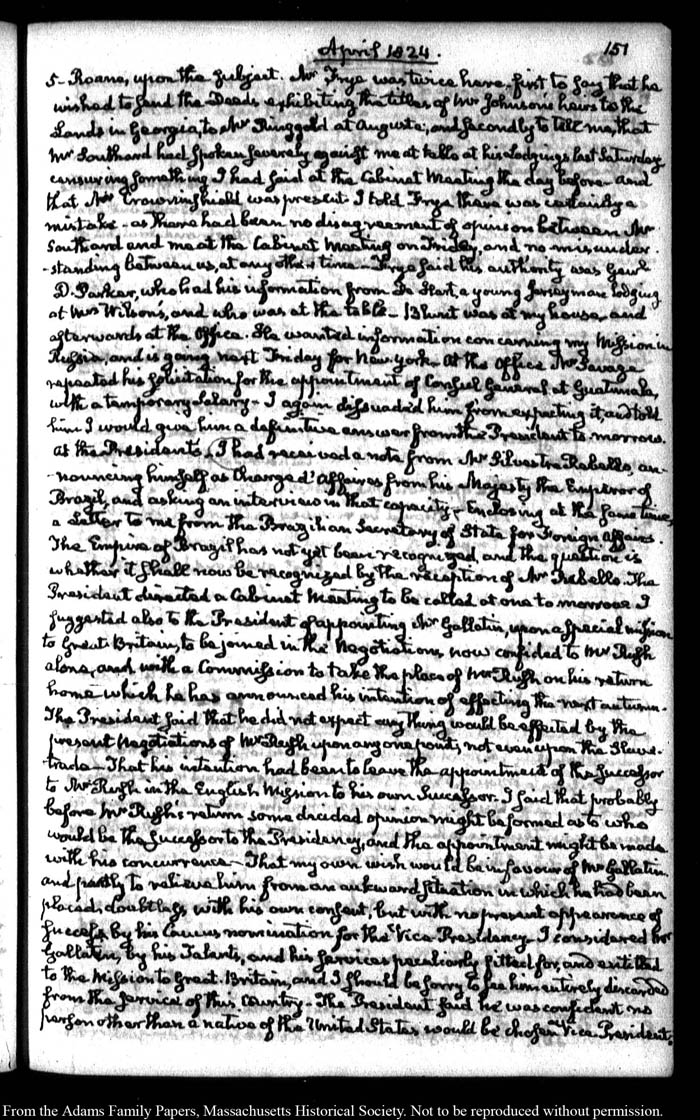 John Quincy Adams diary 35, 25 January 1823 - 31 October 1826, 5 November 1828, and 15 August 1844, page 151