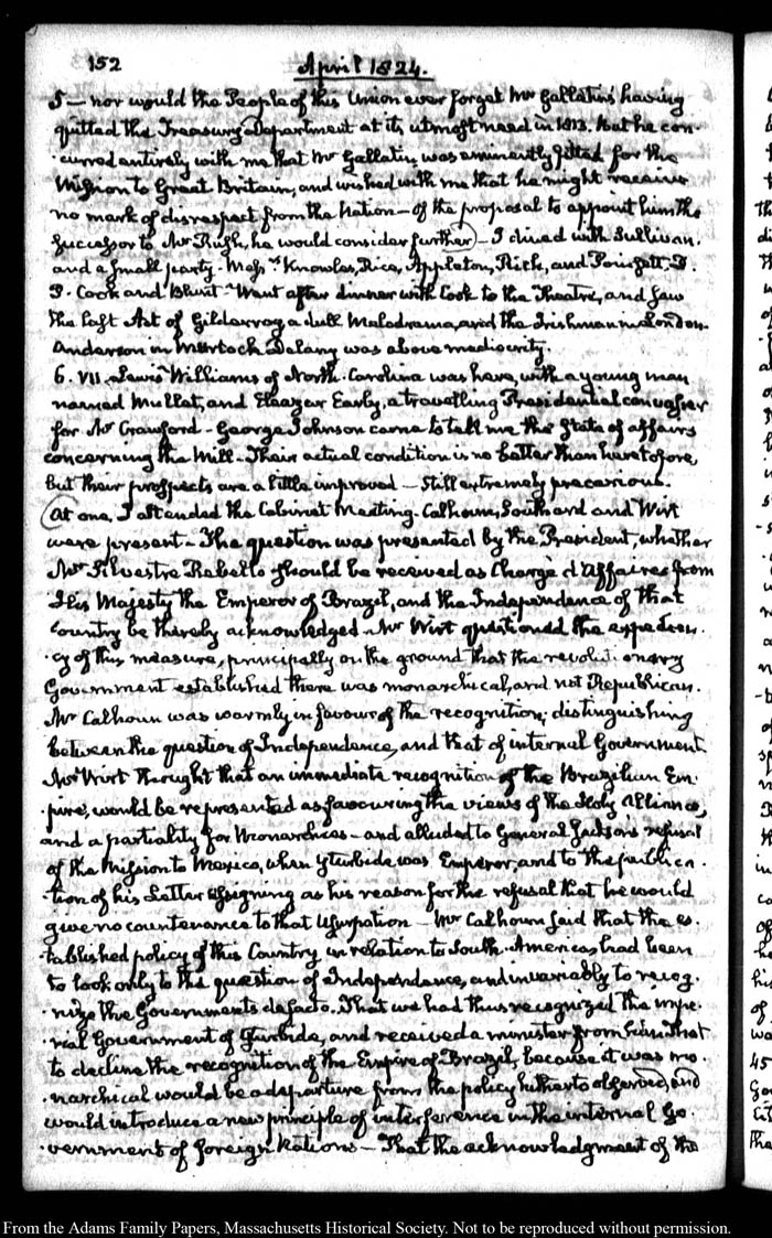 John Quincy Adams diary 35, 25 January 1823 - 31 October 1826, 5 November 1828, and 15 August 1844, page 152