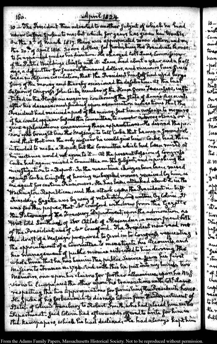 John Quincy Adams diary 35, 25 January 1823 - 31 October 1826, 5 November 1828, and 15 August 1844, page 160