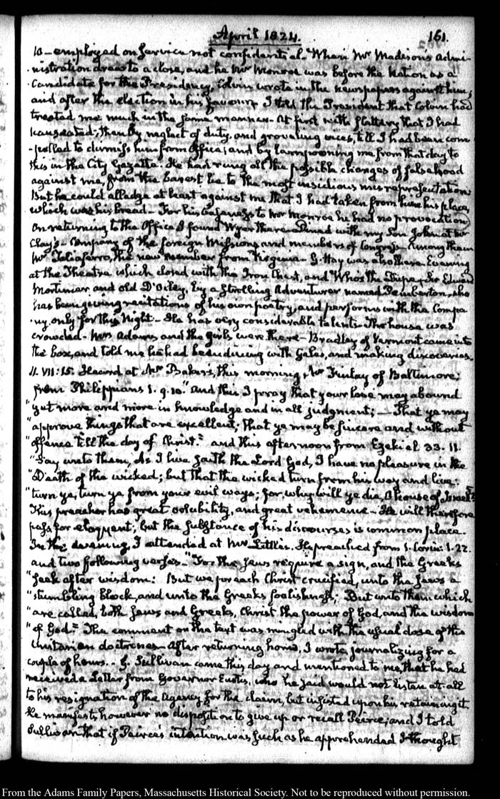 John Quincy Adams diary 35, 25 January 1823 - 31 October 1826, 5 November 1828, and 15 August 1844, page 161