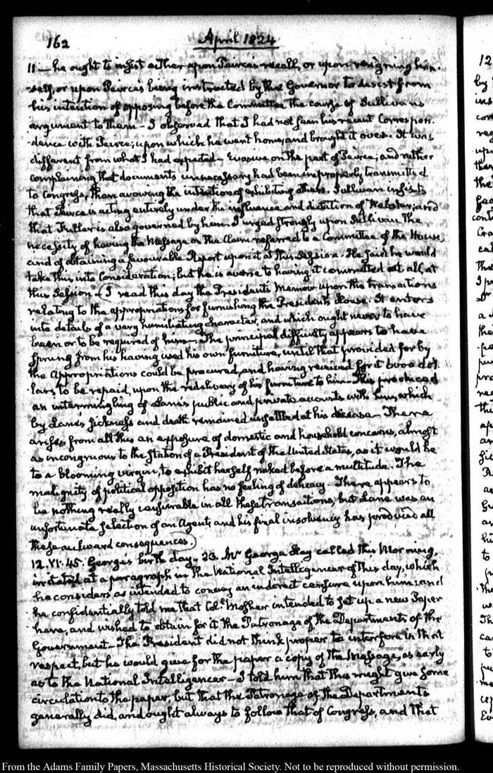John Quincy Adams diary 35, 25 January 1823 - 31 October 1826, 5 November 1828, and 15 August 1844, page 162