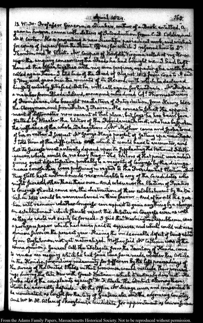 John Quincy Adams diary 35, 25 January 1823 - 31 October 1826, 5 November 1828, and 15 August 1844, page 165