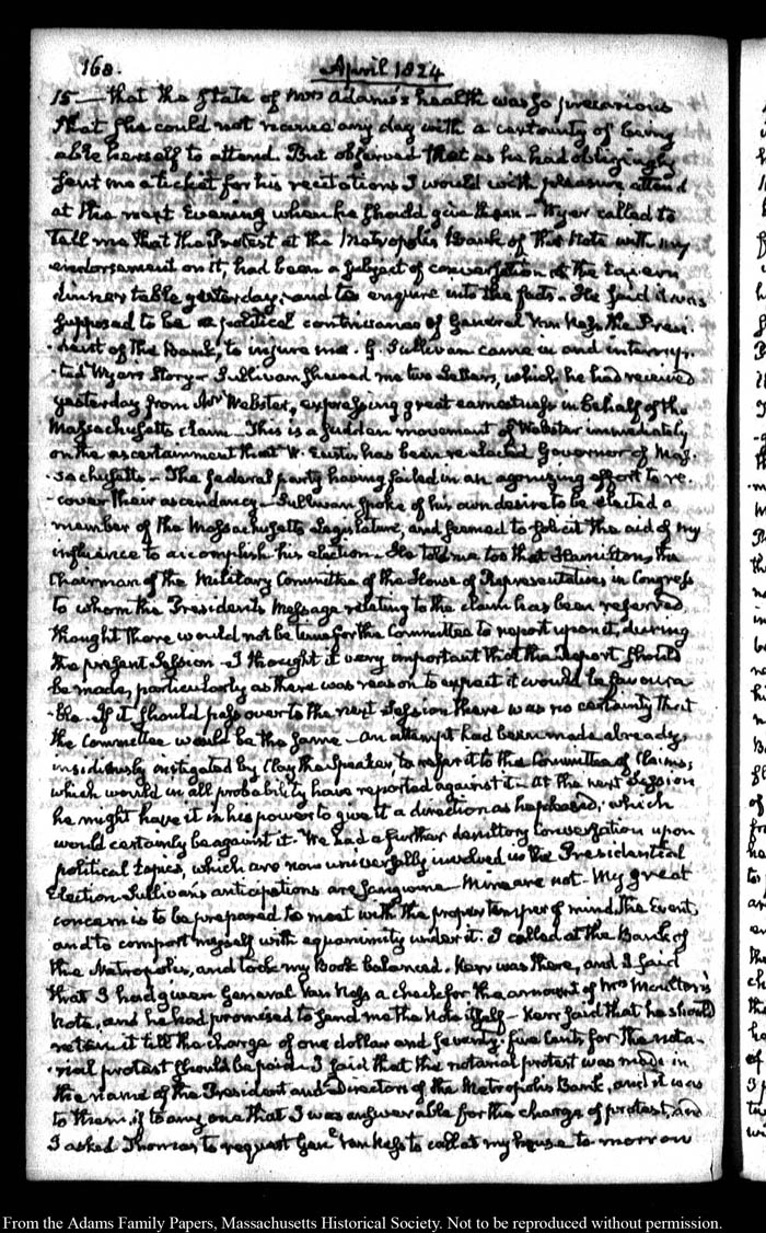 View full, authoritative transcriptions with page images of the diaries at John Quincy Adams Digital Diary part of the Primary Source Cooperative at the MHS.