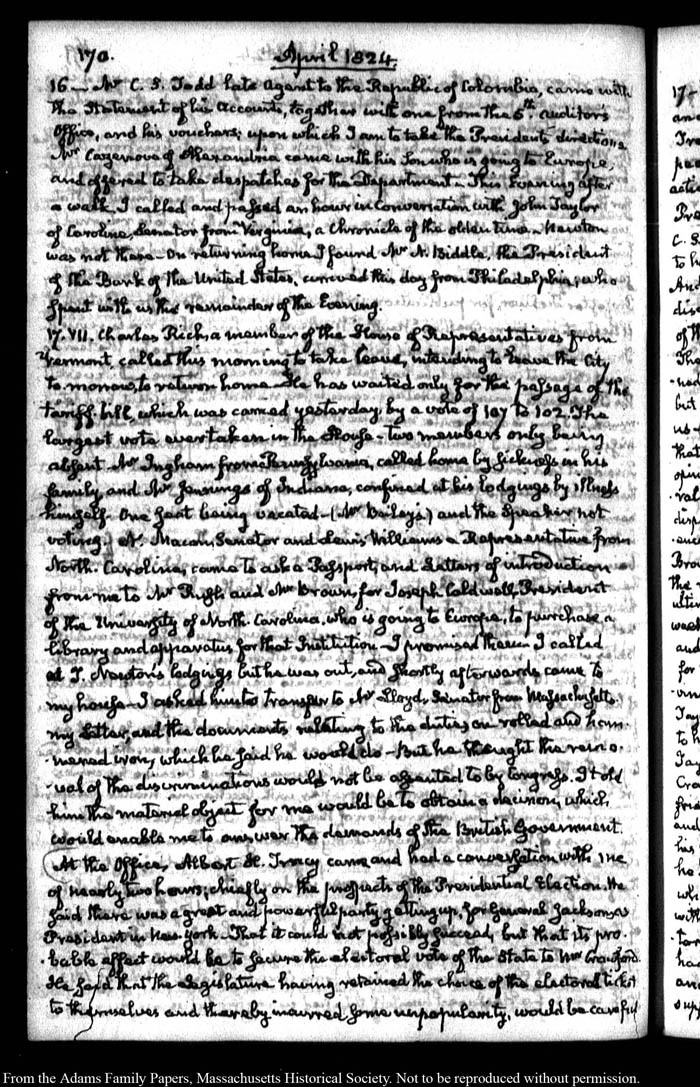 John Quincy Adams diary 35, 25 January 1823 - 31 October 1826, 5 November 1828, and 15 August 1844, page 170