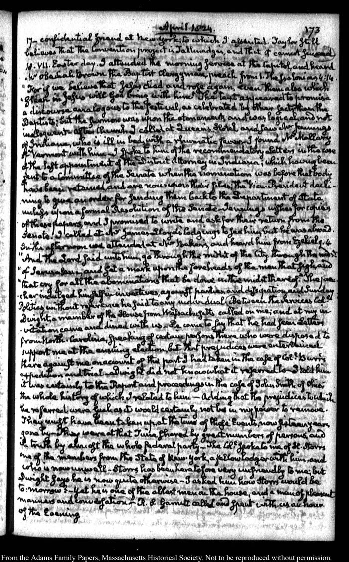 John Quincy Adams diary 35, 25 January 1823 - 31 October 1826, 5 November 1828, and 15 August 1844, page 173