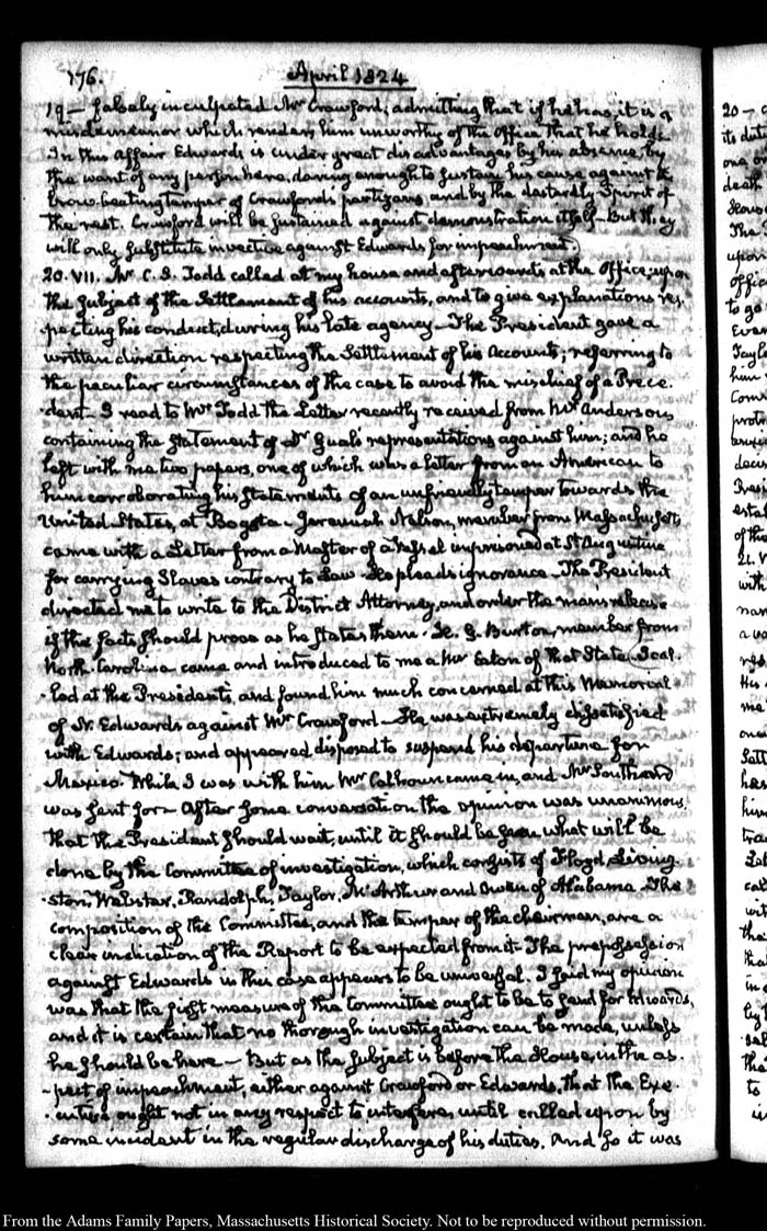John Quincy Adams diary 35, 25 January 1823 - 31 October 1826, 5 November 1828, and 15 August 1844, page 176