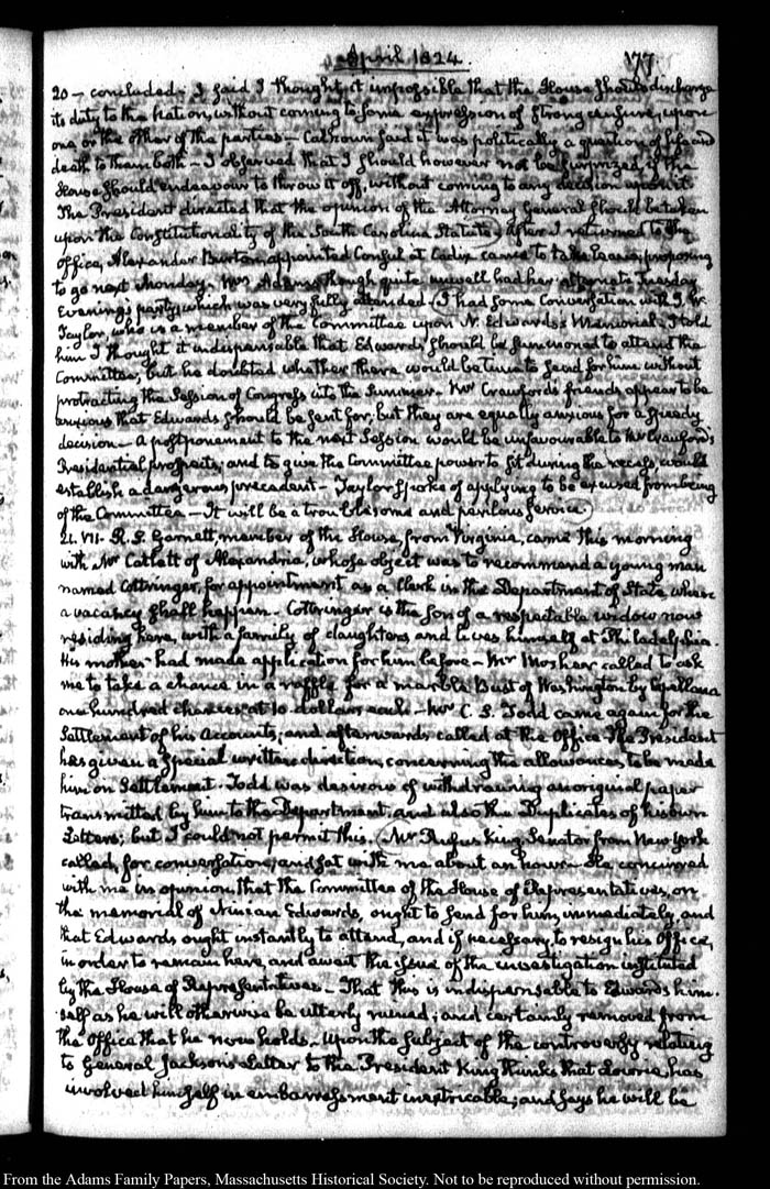 John Quincy Adams diary 35, 25 January 1823 - 31 October 1826, 5 November 1828, and 15 August 1844, page 177