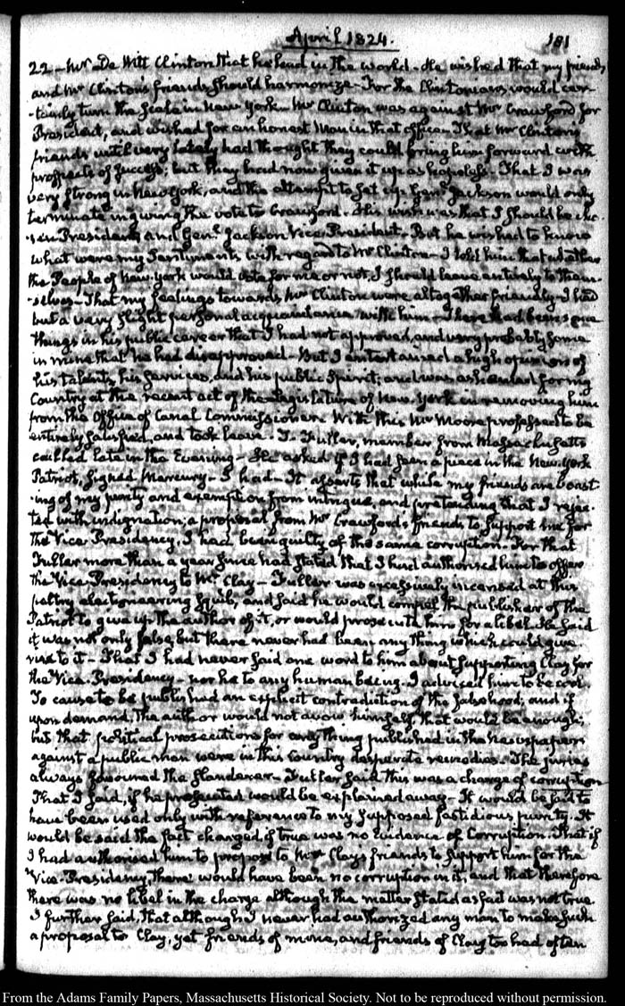 John Quincy Adams diary 35, 25 January 1823 - 31 October 1826, 5 November 1828, and 15 August 1844, page 181