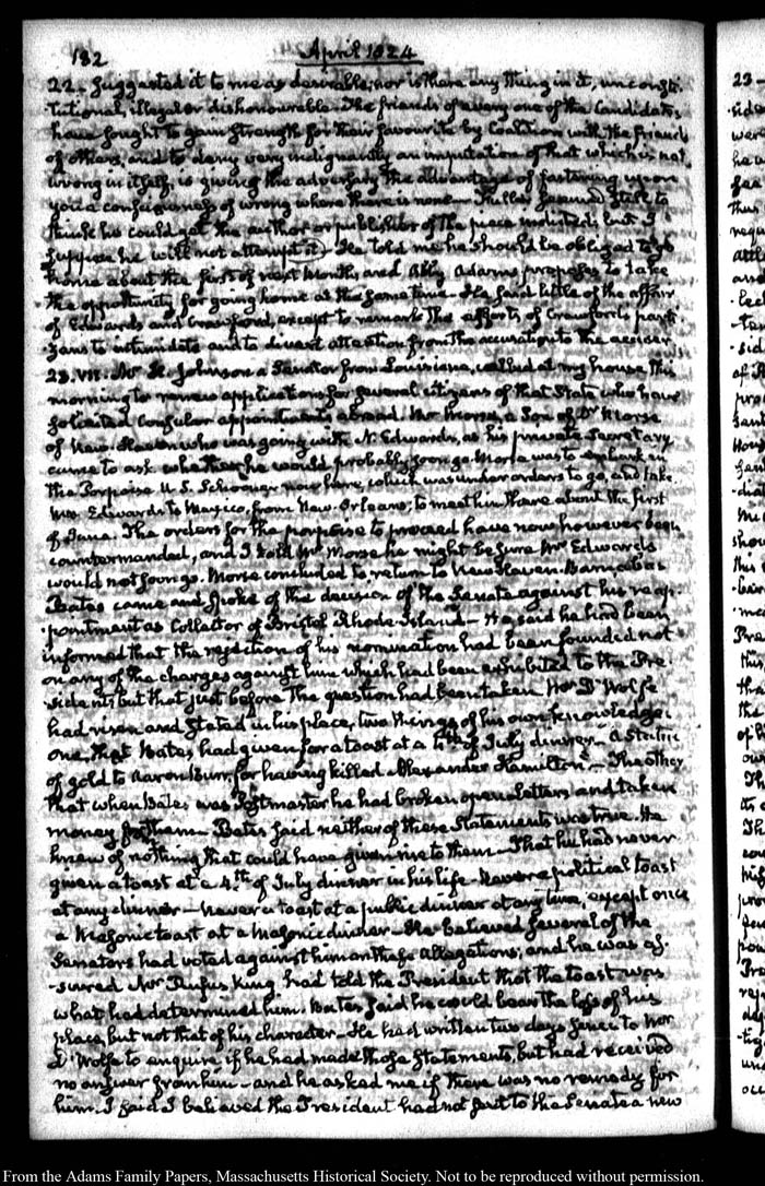 John Quincy Adams diary 35, 25 January 1823 - 31 October 1826, 5 November 1828, and 15 August 1844, page 182
