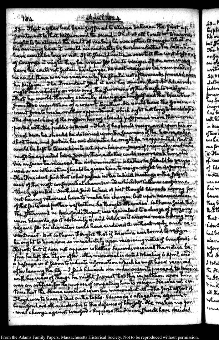 John Quincy Adams diary 35, 25 January 1823 - 31 October 1826, 5 November 1828, and 15 August 1844, page 184