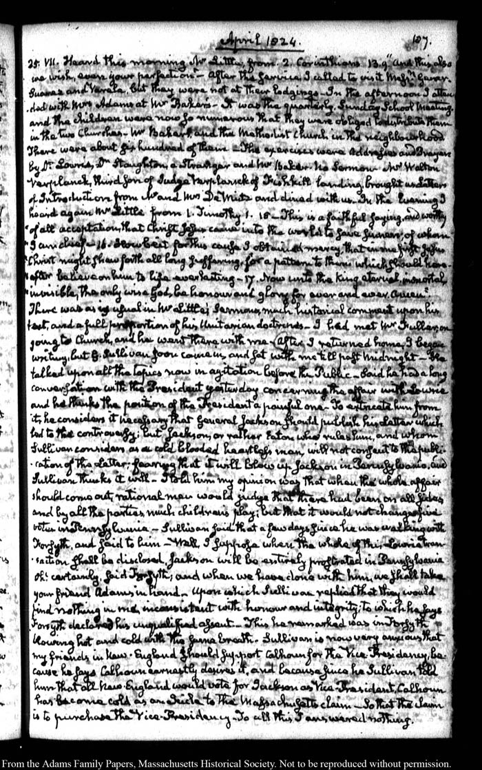 View full, authoritative transcriptions with page images of the diaries at John Quincy Adams Digital Diary part of the Primary Source Cooperative at the MHS.