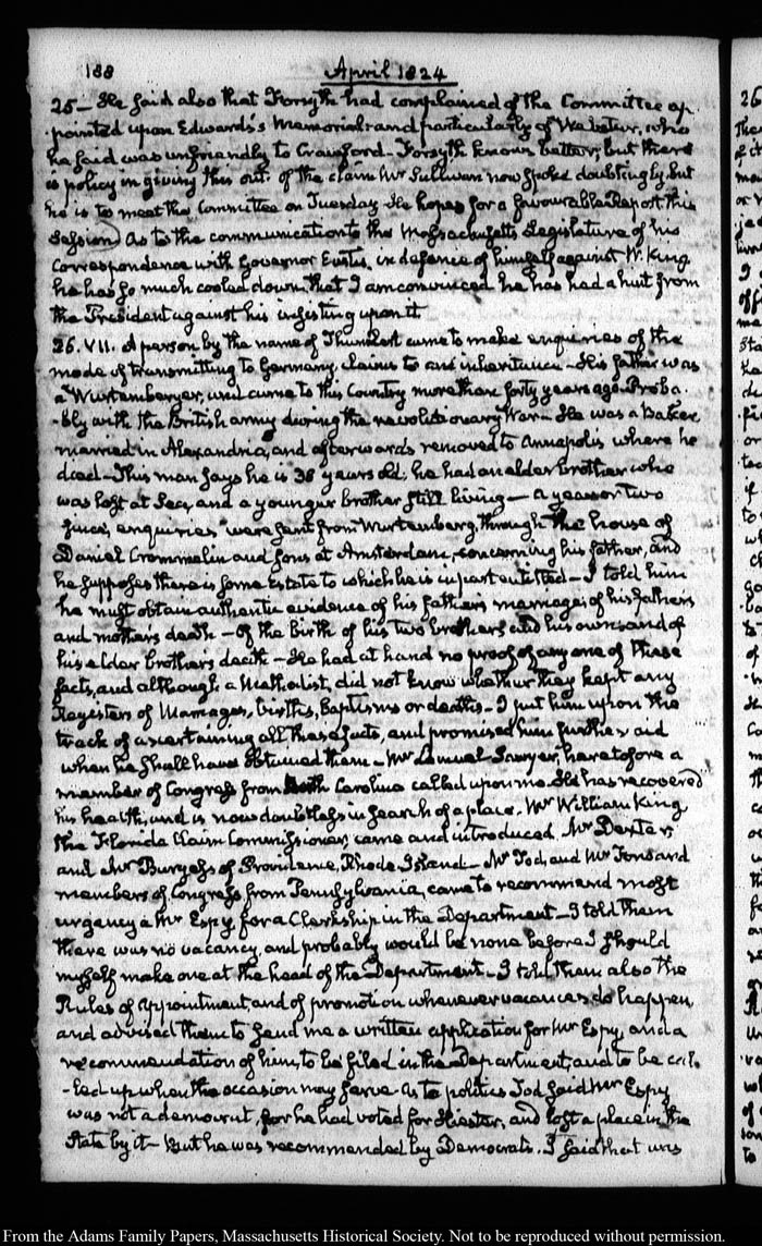 John Quincy Adams diary 35, 25 January 1823 - 31 October 1826, 5 November 1828, and 15 August 1844, page 188