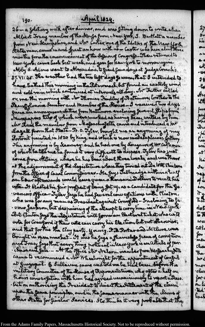John Quincy Adams diary 35, 25 January 1823 - 31 October 1826, 5 November 1828, and 15 August 1844, page 190
