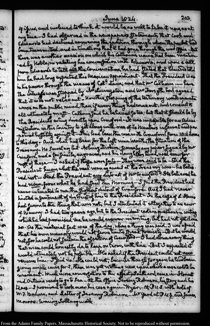 John Quincy Adams diary 35, 25 January 1823 - 31 October 1826, 5 November 1828, and 15 August 1844, page 203