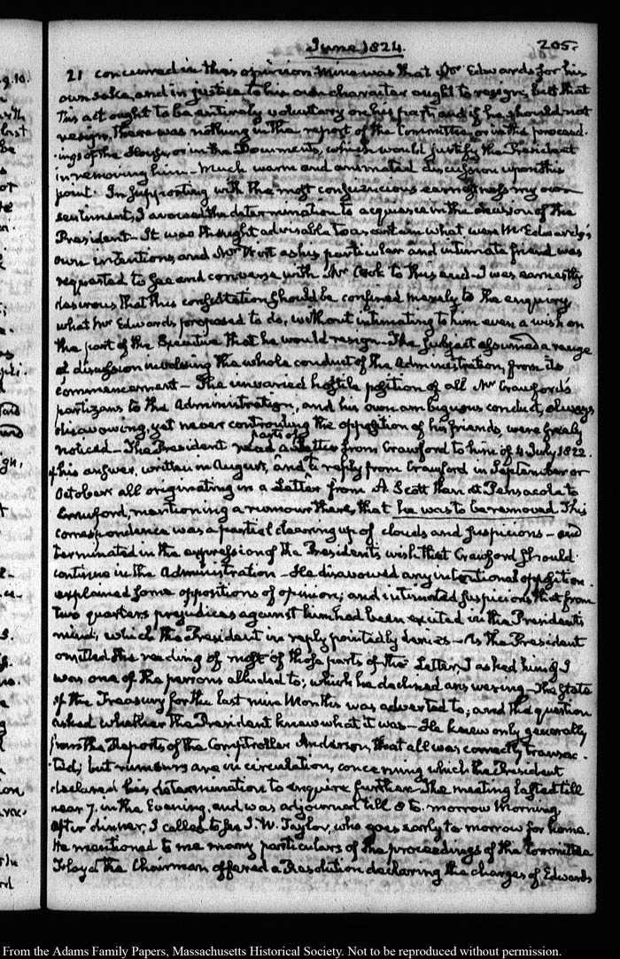 John Quincy Adams diary 35, 25 January 1823 - 31 October 1826, 5 November 1828, and 15 August 1844, page 205
