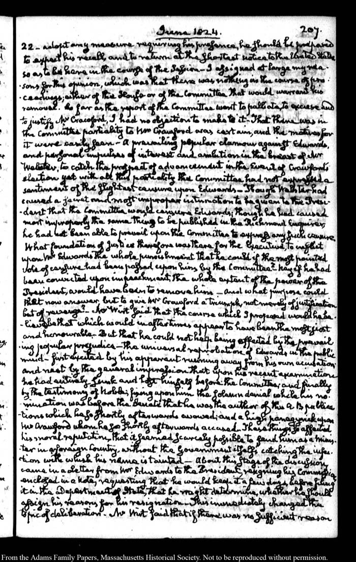 John Quincy Adams diary 35, 25 January 1823 - 31 October 1826, 5 November 1828, and 15 August 1844, page 207