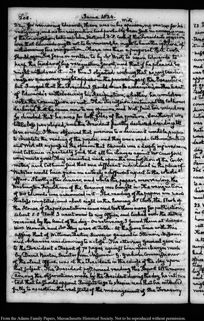 John Quincy Adams diary 35, 25 January 1823 - 31 October 1826, 5 November 1828, and 15 August 1844, page 208