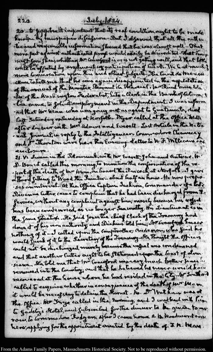 John Quincy Adams diary 35, 25 January 1823 - 31 October 1826, 5 November 1828, and 15 August 1844, page 220