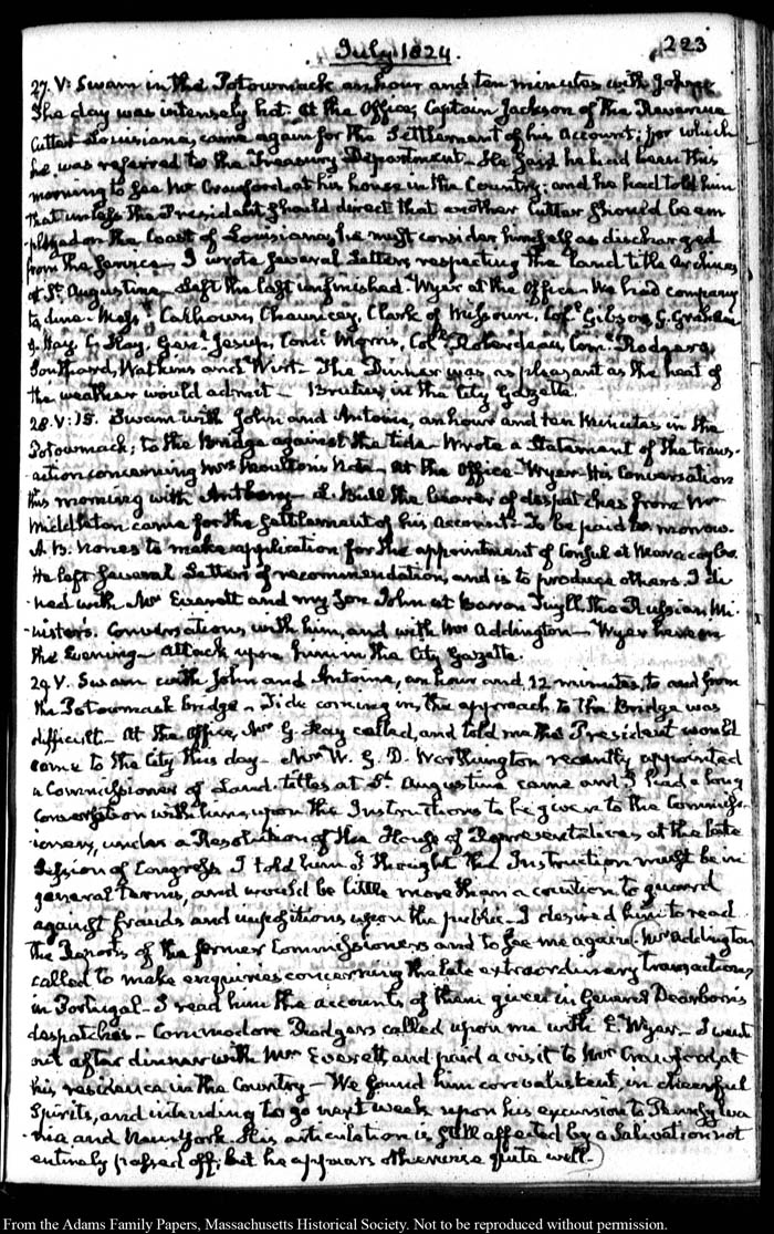John Quincy Adams diary 35, 25 January 1823 - 31 October 1826, 5 November 1828, and 15 August 1844, page 223