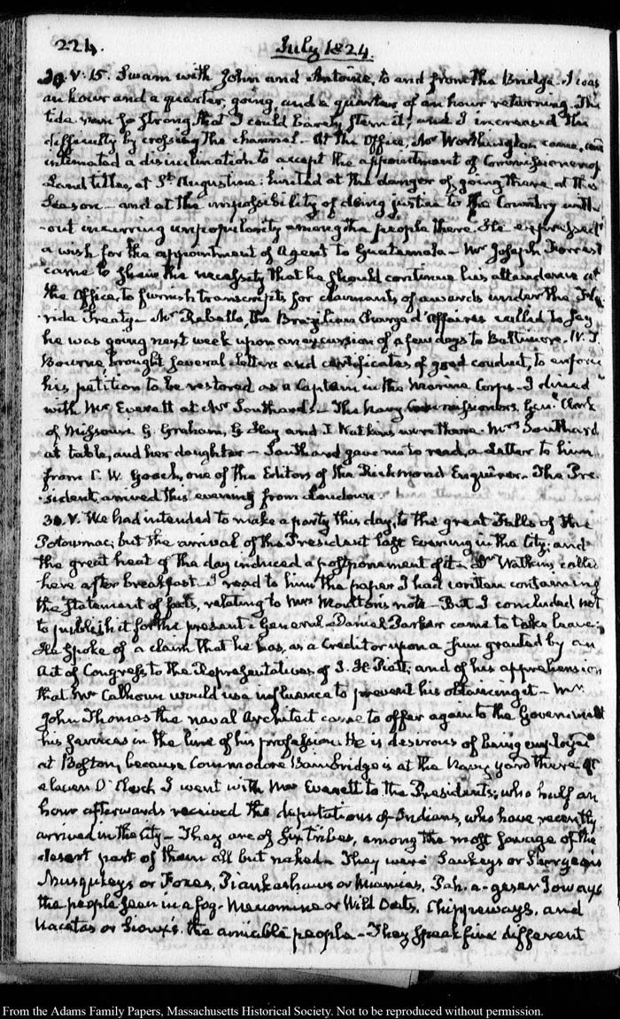 John Quincy Adams diary 35, 25 January 1823 - 31 October 1826, 5 November 1828, and 15 August 1844, page 224