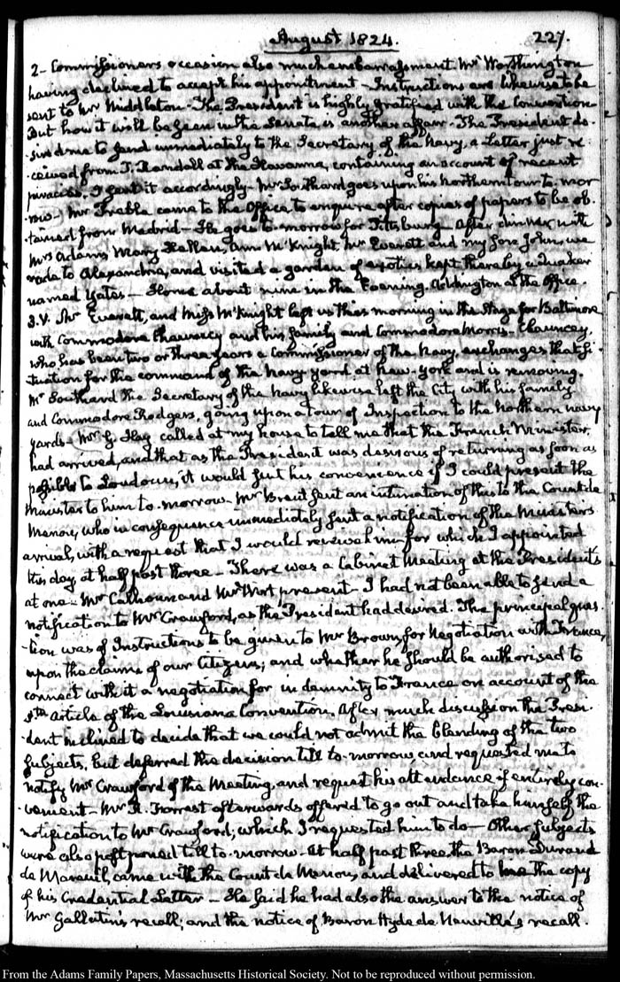 John Quincy Adams diary 35, 25 January 1823 - 31 October 1826, 5 November 1828, and 15 August 1844, page 227