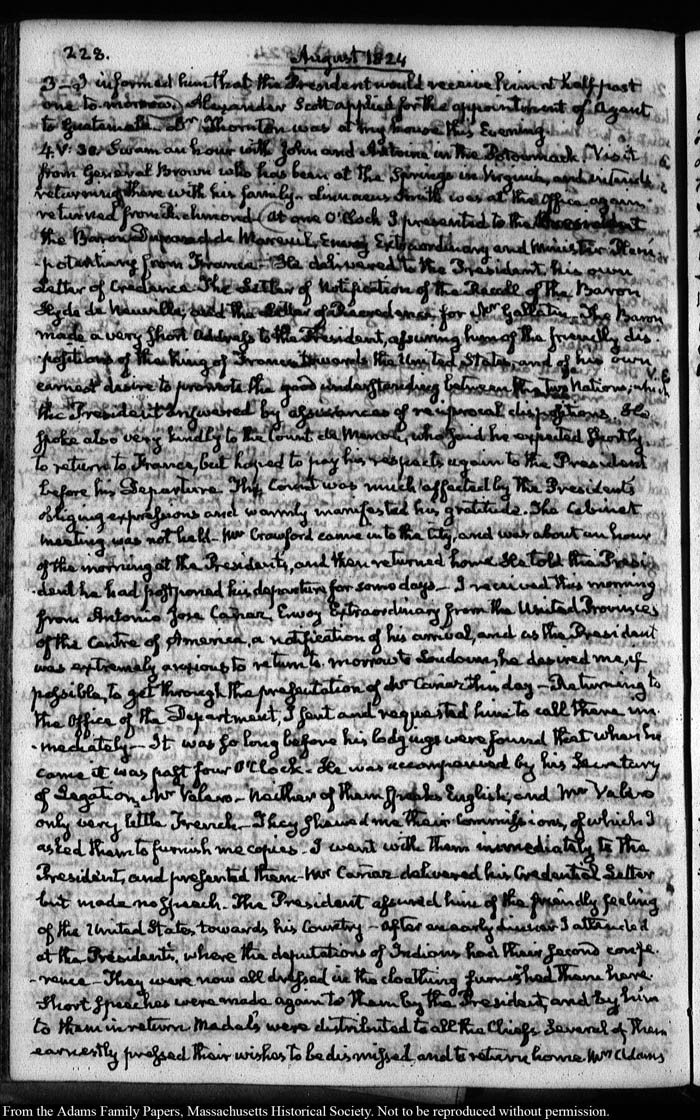 John Quincy Adams diary 35, 25 January 1823 - 31 October 1826, 5 November 1828, and 15 August 1844, page 228
