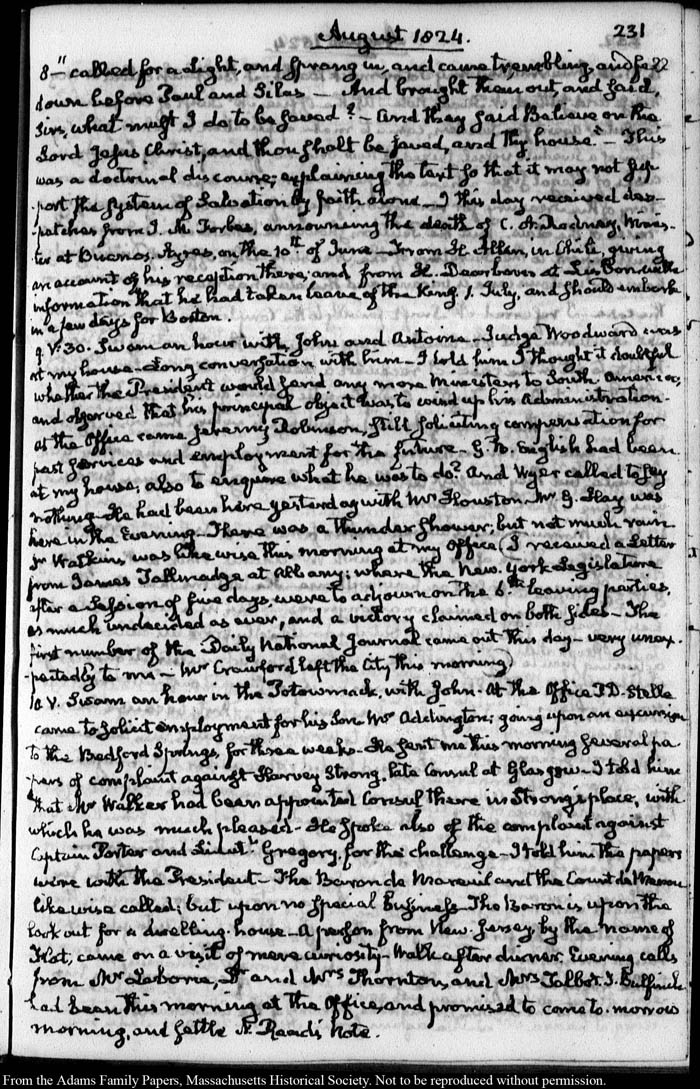 John Quincy Adams diary 35, 25 January 1823 - 31 October 1826, 5 November 1828, and 15 August 1844, page 231