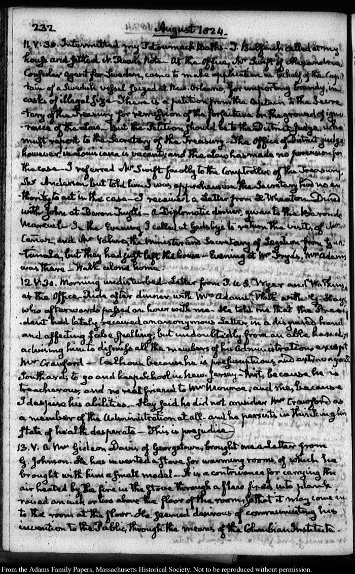 John Quincy Adams diary 35, 25 January 1823 - 31 October 1826, 5 November 1828, and 15 August 1844, page 232