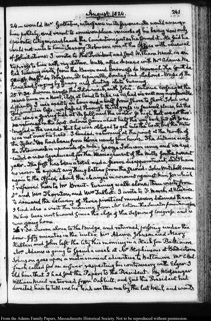 John Quincy Adams diary 35, 25 January 1823 - 31 October 1826, 5 November 1828, and 15 August 1844, page 241