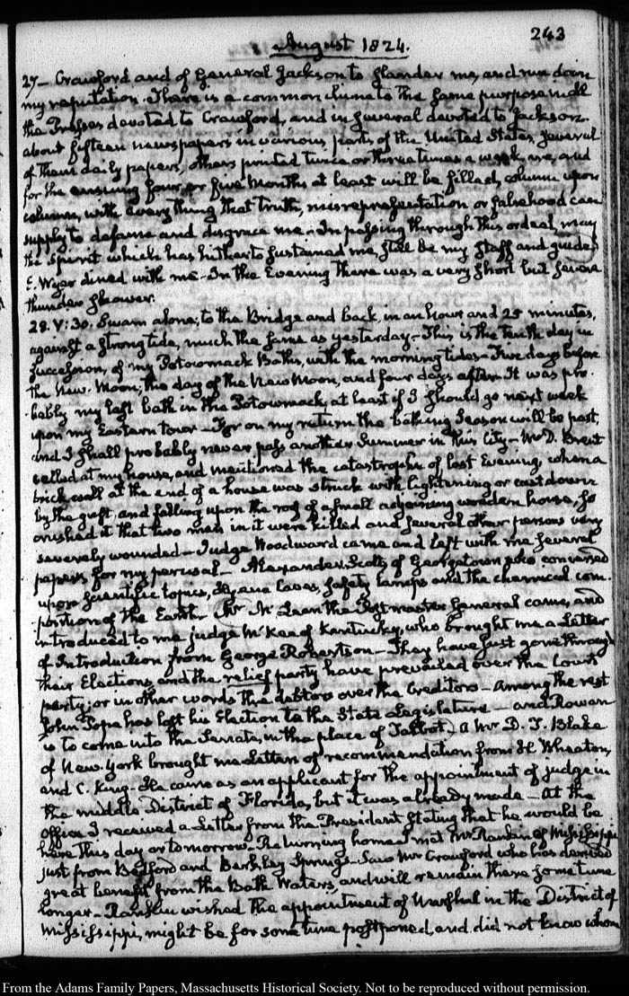 John Quincy Adams diary 35, 25 January 1823 - 31 October 1826, 5 November 1828, and 15 August 1844, page 243