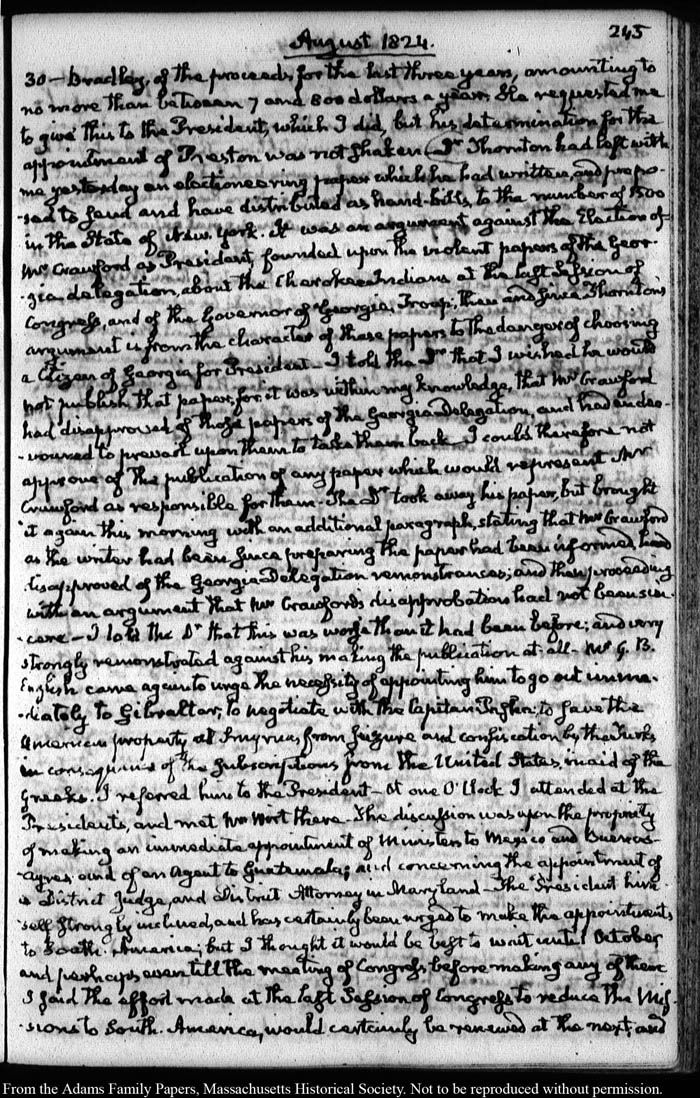 John Quincy Adams diary 35, 25 January 1823 - 31 October 1826, 5 November 1828, and 15 August 1844, page 245