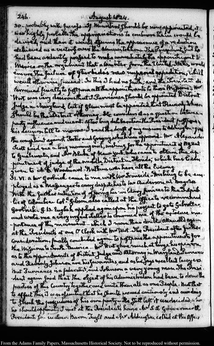 John Quincy Adams diary 35, 25 January 1823 - 31 October 1826, 5 November 1828, and 15 August 1844, page 246