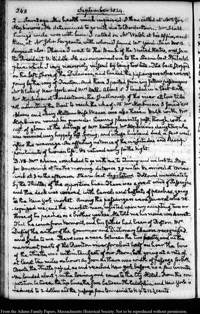 John Quincy Adams diary 35, 25 January 1823 - 31 October 1826, 5 November 1828, and 15 August 1844, page 248