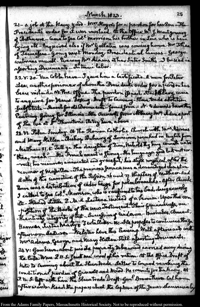 John Quincy Adams diary 35, 25 January 1823 - 31 October 1826, 5 November 1828, and 15 August 1844, page 25