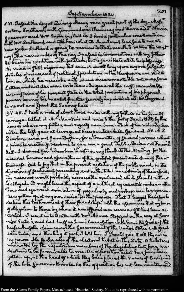 John Quincy Adams diary 35, 25 January 1823 - 31 October 1826, 5 November 1828, and 15 August 1844, page 251