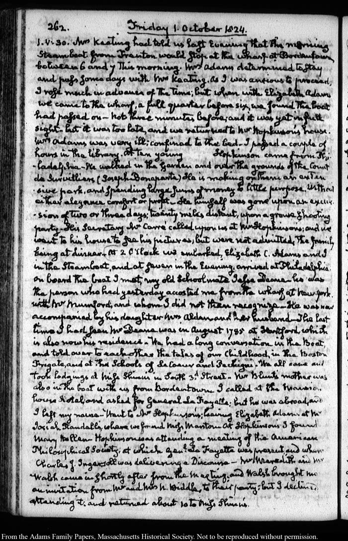 John Quincy Adams diary 35, 25 January 1823 - 31 October 1826, 5 November 1828, and 15 August 1844, page 262